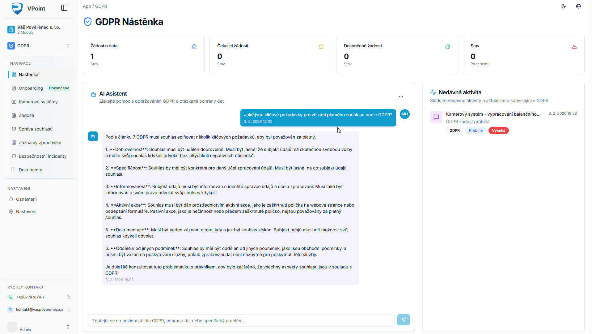 Integrujeme GenAI do platformy a přidáváme AI asistenta PověřenecBot pro automatizaci rutinních úkonů.